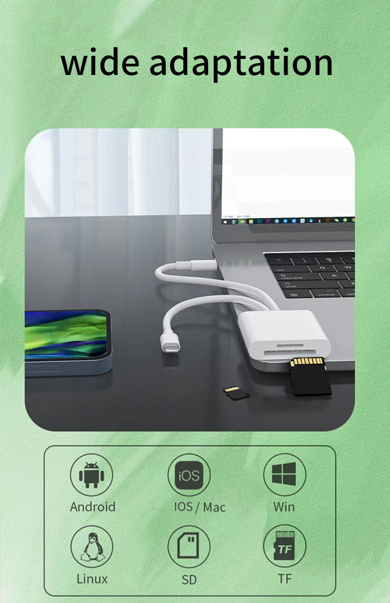 2 In 1 OTG Card Reader Type C Lightning to SD TF Memory Card Adapter For PC Laptop iPhone Multi Smart Cardreader No APP Requires