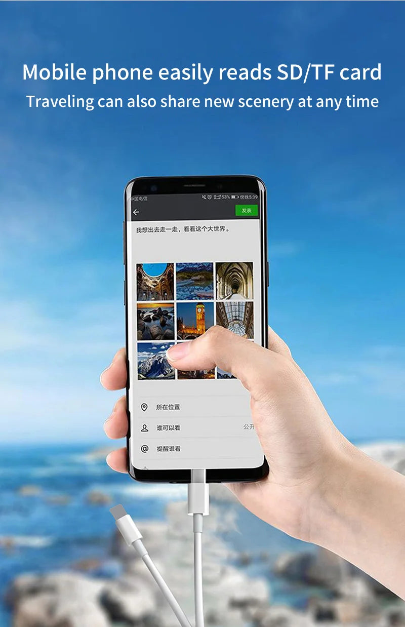 【Easy to Use, Plug and Play】No APP Needed, The adapter does not require an application, Portable and easily Transfer the photos and videos to your USB C or iOS device from SD / TF Card.