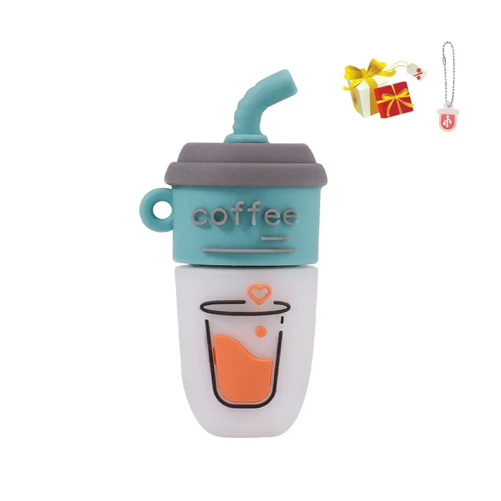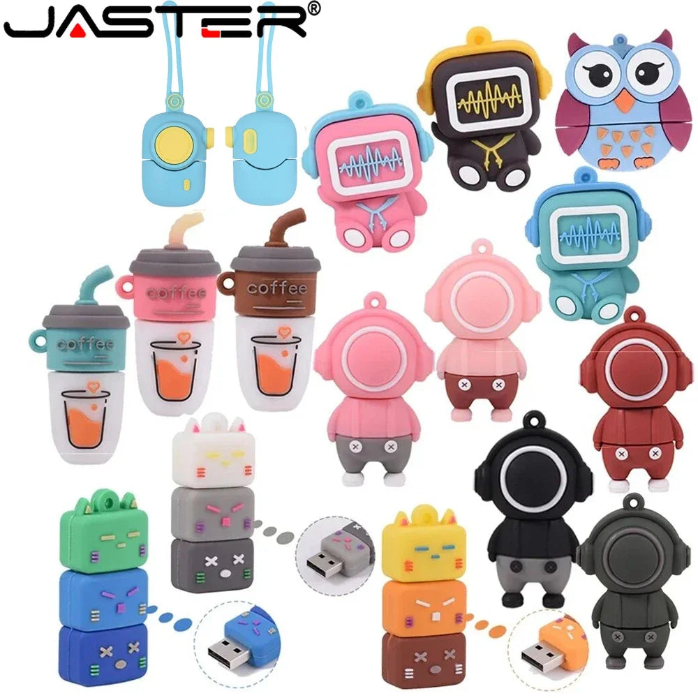 JASTER USB Flash Drive 64GB Cute Cartoon Coffee Cup Music Doll Pen Drive Owl Camera Free Keychain Creative Gift Memory Stick