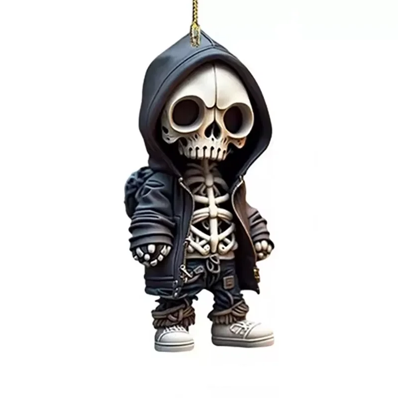 Swinging Skeleton Car Pendant - This swinging skeleton decoration adds some quirky style to your car. This decoration is made of durable materials that are not easily faded and can be hung on the rearview mirror or anywhere you like. It is also an interesting office desk accessory or a strange gift for children who love skeletons.